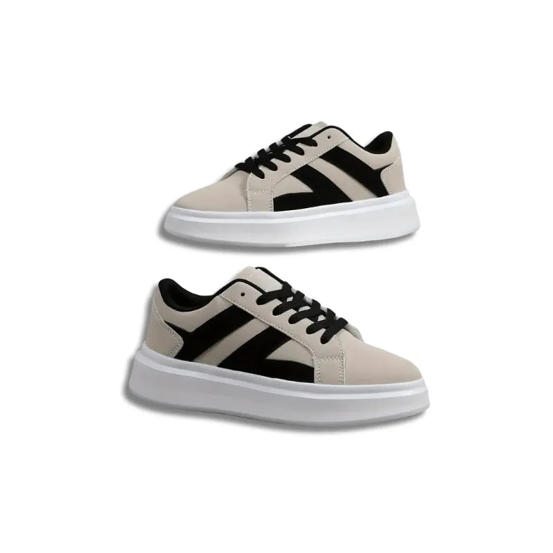 The Contrasting Urban Sneakers stand out with their beige and black color blocks, perfect for a trendy look.