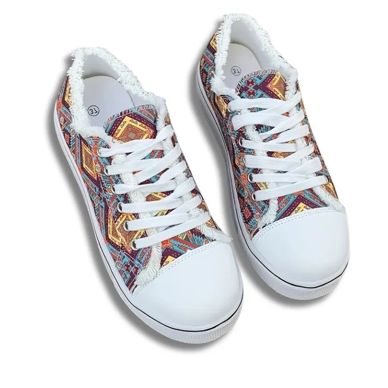 Les Baskets Ethniques Chic se distinguent par leurs motifs vibrants et inspirés de l’artisanat traditionnel. Idéales pour ajouter une touche d'originalité et de couleur à vos tenues, elles s’intègrent parfaitement à un look décontracté ou bohème. Leur doublure douce ajoute une note chaleureuse, idéale pour les saisons plus fraîches.