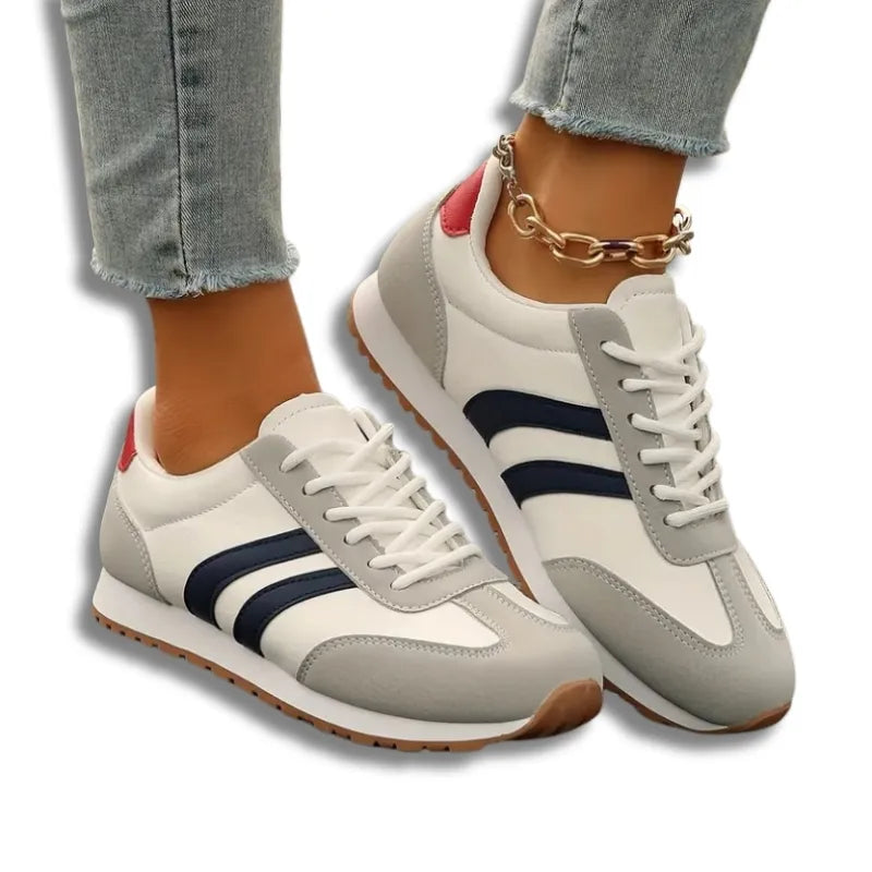 Les Baskets Vintage Dynamique apportent une touche intemporelle à vos tenues grâce à leur design inspiré des sneakers classiques. Avec leurs nuances de gris, de bleu marine et leur détail rouge, elles offrent un look à la fois sportif et élégant. Idéales pour les amatrices de mode décontractée, ces baskets s’accordent parfaitement avec des jeans ou des tenues casual.