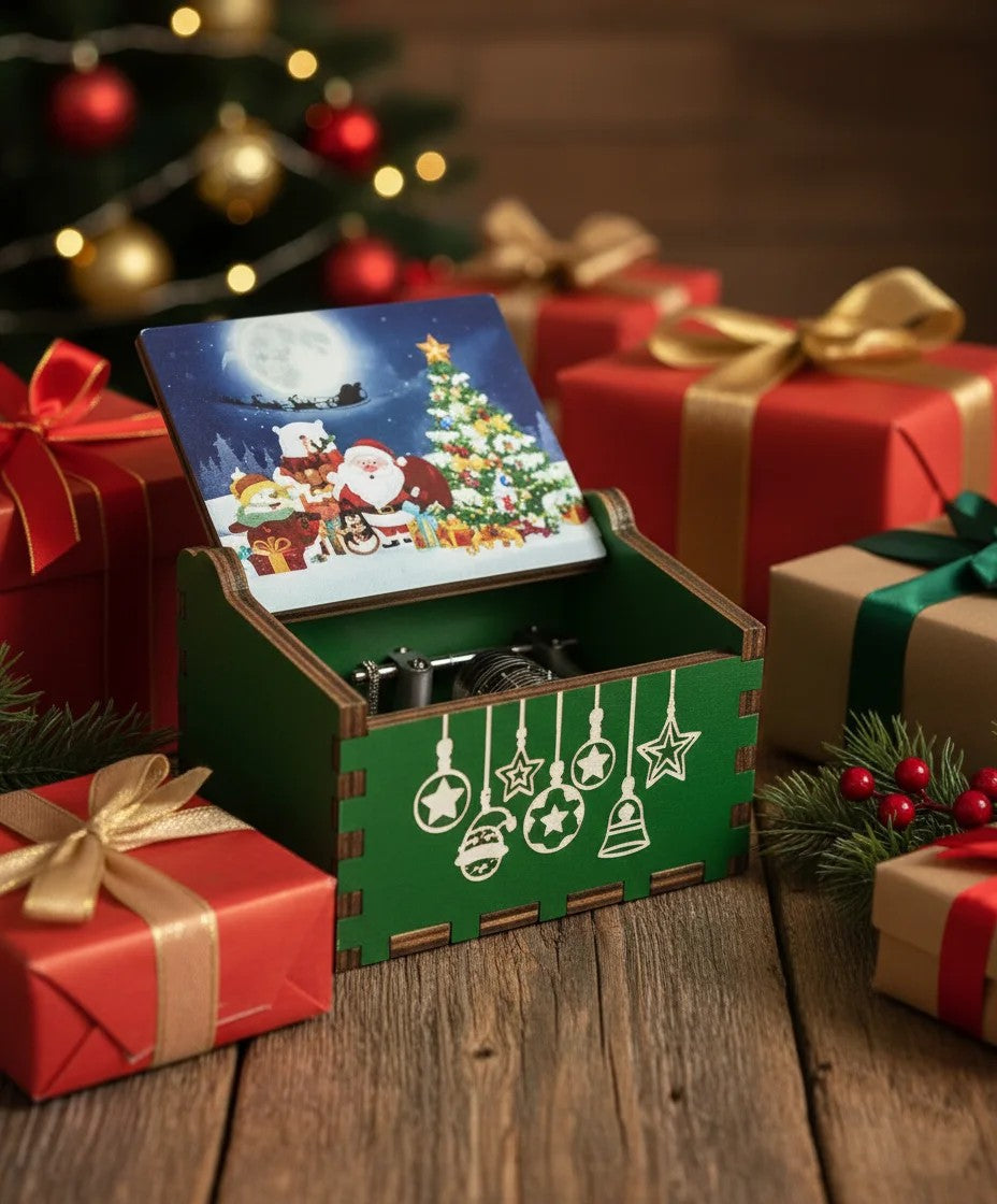 Plongez dans la magie des fêtes avec cette boîte à musique au charme artisanal. Alliant tradition, élégance et émotion, elle diffuse une douce mélodie mécanique tout en décorant votre intérieur d’une touche chaleureuse et féérique.