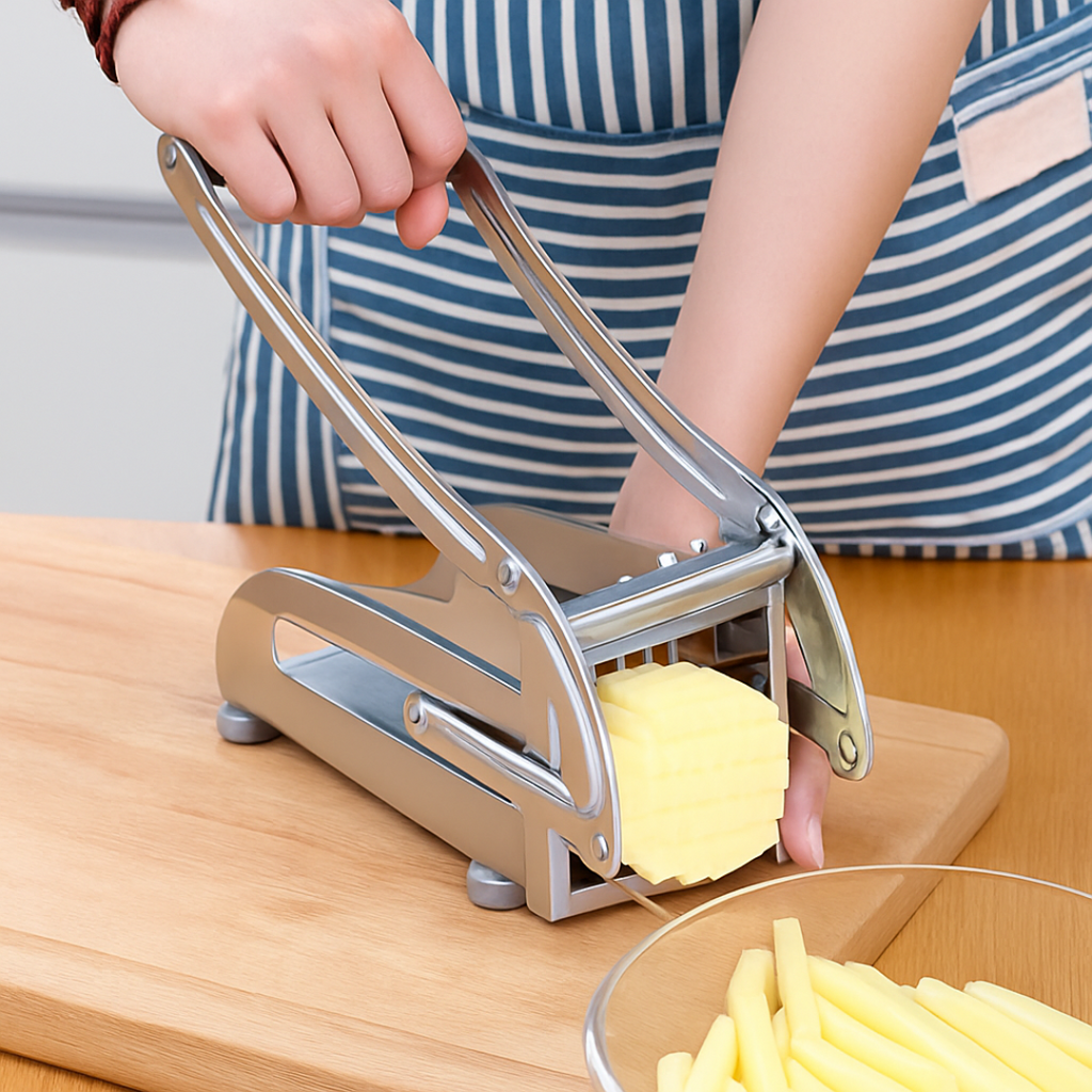 Ce coupe-fruits et légumes permet de réaliser des bâtonnets uniformes et nets en un seul geste, idéal pour les pommes de terre, carottes, courgettes ou poivrons. Équipé de deux lames interchangeables, il offre la possibilité de créer des frites épaisses ou fines selon vos besoins, pour des plats esthétiques et réguliers à chaque préparation. Sa conception robuste en acier inoxydable de qualité alimentaire, associée à des pieds antidérapants et un système de ventouse, assure stabilité et sécurité pendant l’utilisation. Facile à nettoyer et durable, cet outil pratique transforme la préparation des repas en une tâche rapide et agréable, tout en garantissant des découpes précises et professionnelles.