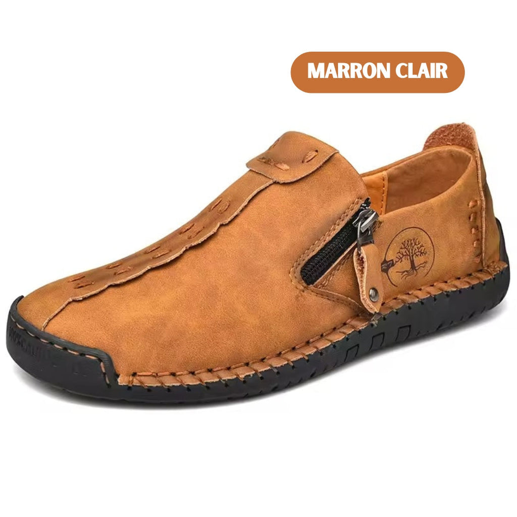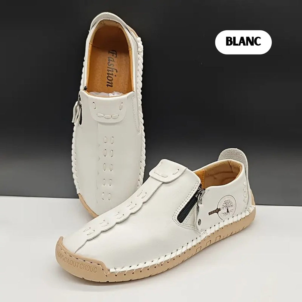 Les mocassins Ayari sont conçus pour s’adapter à votre rythme et à votre style. Leur coupe basse, légère et flexible vous accompagne dans toutes vos activités quotidiennes, tout en assurant confort et liberté de mouvement. Faciles à enfiler grâce à leur zip frontal, ces chaussures modernes s’inscrivent dans une esthétique artisanale chic, avec leurs coutures visibles et leur motif arbre brodé. Leur semelle en caoutchouc souple et antidérapante offre une marche stable, même sur des sols lisses, et réduit efficacement la fatigue. Adaptés aussi bien à un look citadin qu’à une tenue plus décontractée, ils deviennent rapidement un indispensable du quotidien. Disponibles en huit coloris naturels et élégants, les Ayari sont le parfait compromis entre confort, design et polyvalence.