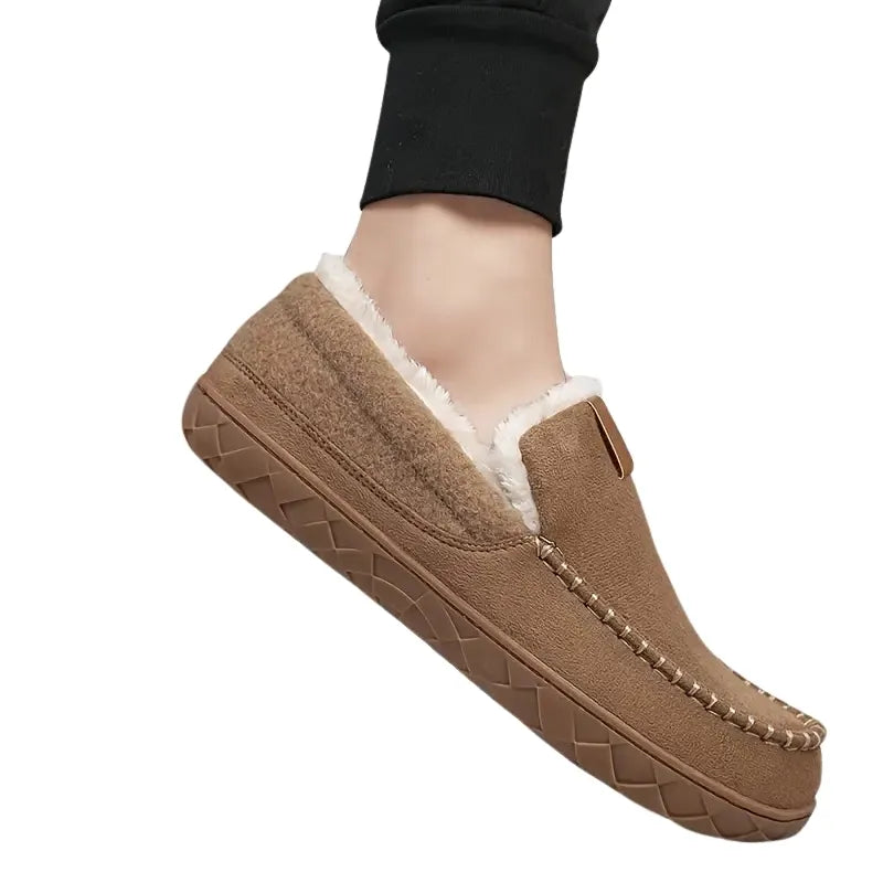 Apportez chaleur et confort à vos pieds avec les pantoufles Nordic Cozy, conçues avec une doublure en fausse fourrure ultra-douce pour envelopper vos pieds lors des journées froides. Leur design inspiré des mocassins classiques et leurs coutures apparentes leur confèrent une élégance rustique et intemporelle. La semelle rembourrée épouse parfaitement la forme de votre pied pour un confort optimal, tandis que la semelle extérieure en caoutchouc antidérapant assure stabilité et durabilité. Polyvalentes, elles sont adaptées aussi bien pour l’intérieur que pour l’extérieur, combinant praticité et style.