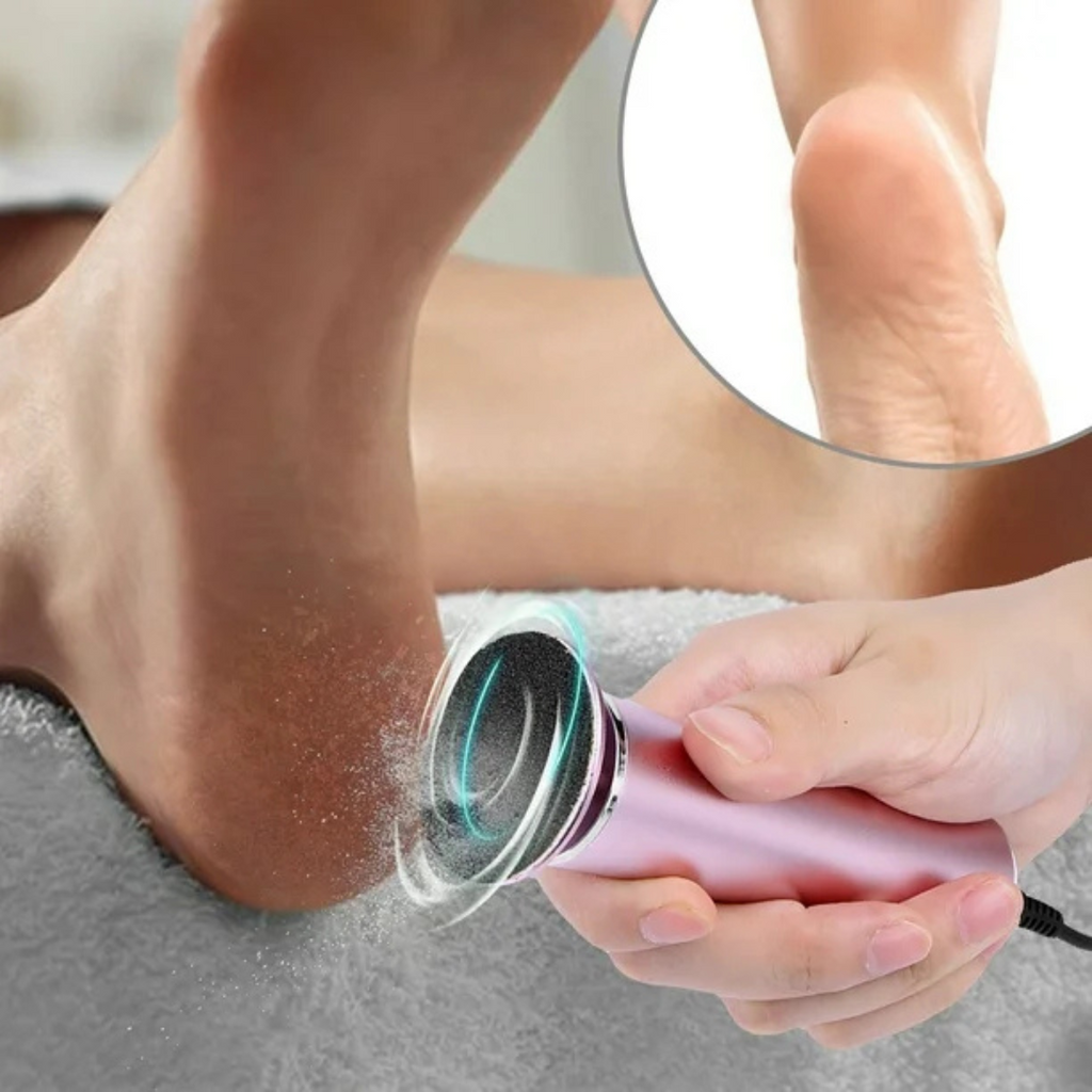 La râpe électrique élimine corne, callosités et talons abîmés dès la première utilisation pour révéler une peau lisse et douce, tout en offrant un soin quotidien qui redonne confort et souplesse aux pieds secs ; grâce à son système rotatif 360° à deux vitesses et son alimentation sur secteur, elle assure une efficacité optimale et durable, complétée par un kit de 60 disques interchangeables — 30 Intense pour retirer la corne et 30 Douceur Velour pour lisser délicatement — afin de garantir des résultats impeccables jour après jour.