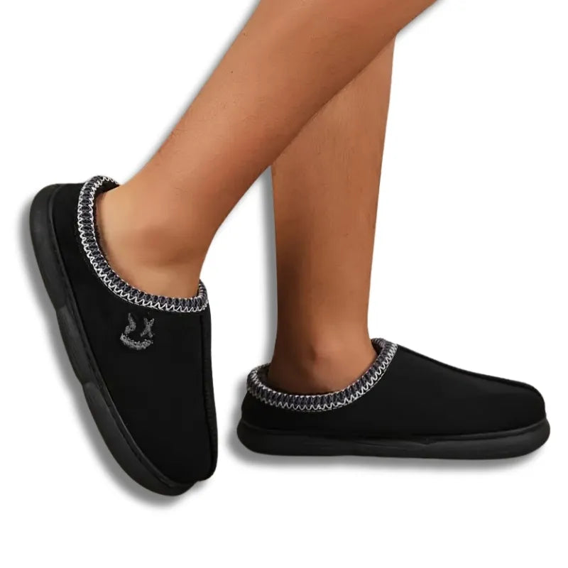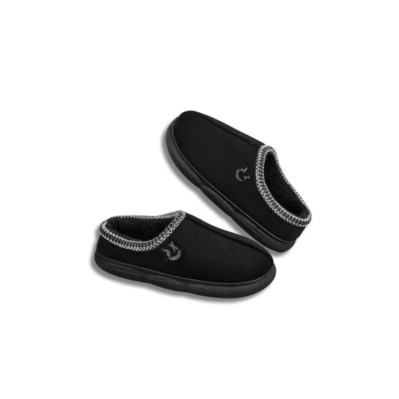 Les pantoufles Winter Shield présentent un design moderne et minimaliste avec leur coloris noir élégant et leurs détails gris contrastants, offrant un look raffiné et intemporel. Leur doublure en textile polaire ultra-douce procure une chaleur enveloppante, idéale pour les journées et soirées fraîches. Grâce à leur col élastiqué, elles assurent un maintien parfait sans pression, pour un confort supérieur à chaque pas. La semelle en caoutchouc antidérapante garantit stabilité et sécurité sur toutes les surfaces, convenant parfaitement à un usage intérieur comme extérieur.